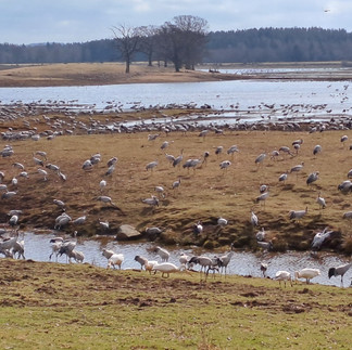 Jedes Jahr im Frühling, zwischen März und Ende April, zur Hochzeit versammeln sich hier bis zu 30.000 dieser majestätischen Vögel am Hornborgasee während ihrer Frühjahrs- und Herbstwanderung.